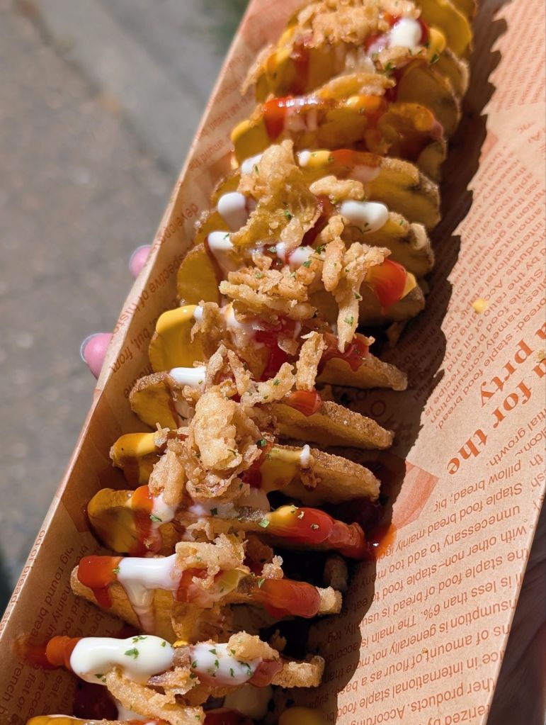Potato spirals at a street fair are fun, but I do wish I’d ordered one with less toppings. What didn’t land on the ground at my feet was delicious, but unnecessarily messy.
