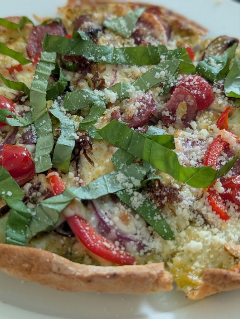 Each Friday night my parents’ make “pizza”, where they top pitas with whatever they’ve got in the fridge. I love this idea and not-so-subtly invite myself over once in a while.